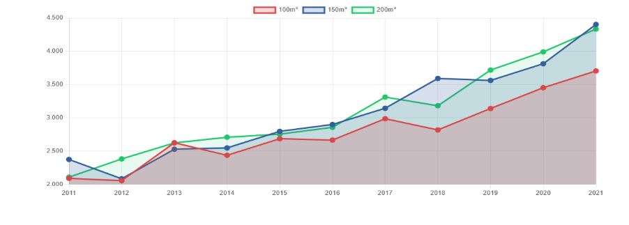 Wie fast überall in Deutschland sind in den letzten Jahren auch die Immobilienpreise in Neuss angestiegen. Im Jahr 2011 lag der Kaufpreis für eine 100 m² große Immobilie bei 2.064,28 €, 10 Jahre später sprechen wir von 2.370,91 €.