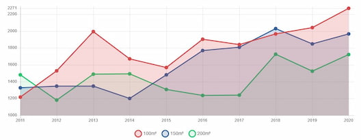 Für ein Haus liegt der Quadratmeterpreis etwas höher. Der Mietpreis für ein Haus mit etwa 100 m² ist derzeit mit durchschnittlich 7,70 EUR/m² anzusetzen.